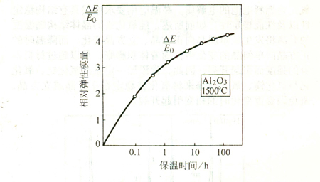 在噴涂狀態(tài)下,涂層內(nèi)的扁平粒子間的結(jié)合率只有15%~32%,當(dāng)在高溫下長時間熱處理時,涂層將發(fā)生燒結(jié)現(xiàn)象,從而使涂層的性能發(fā)生變化。在1500PC下熱處理時,隨保溫時間的增加,涂層的相對彈性模量增加,如圖13所示。因此,在高溫下使用時,需要考慮涂層的結(jié)構(gòu)與性能的穩(wěn)定性。
