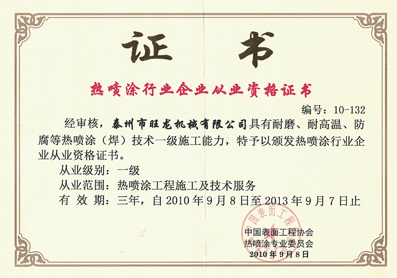 下一證書:熱噴涂行業(yè)從業(yè)證書